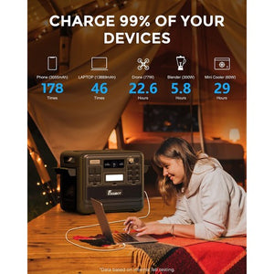 La centrale électrique portable FOSSiBOT intègre la dernière technologie d'onduleur bidirectionnel et une combinaison parfaite de boutons de réglage intelligents de la puissance d'entrée. Sa puissance d'entrée atteint 1100 W et permet une charge de 0 à 80 % en 80 minutes, et une charge complète en 1,78 heure.